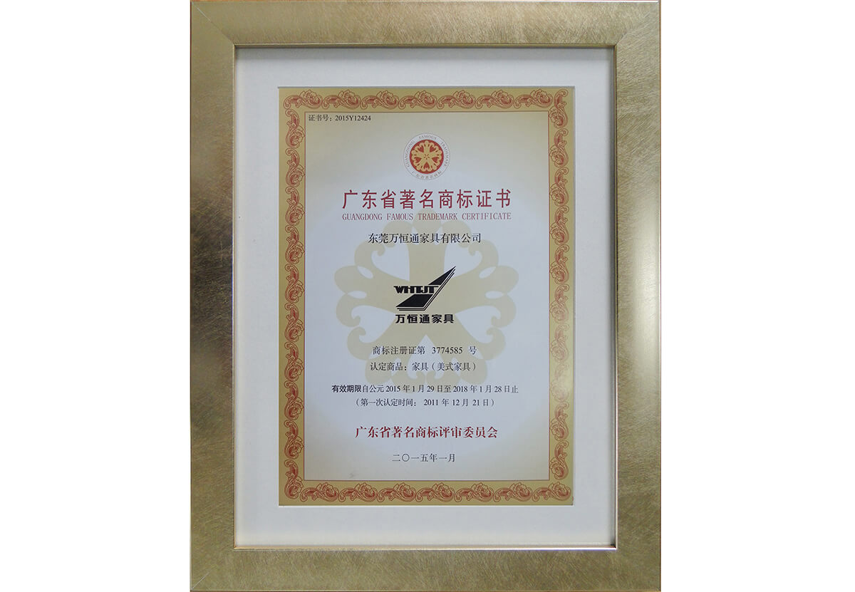 廣東省著名商標(biāo)證書