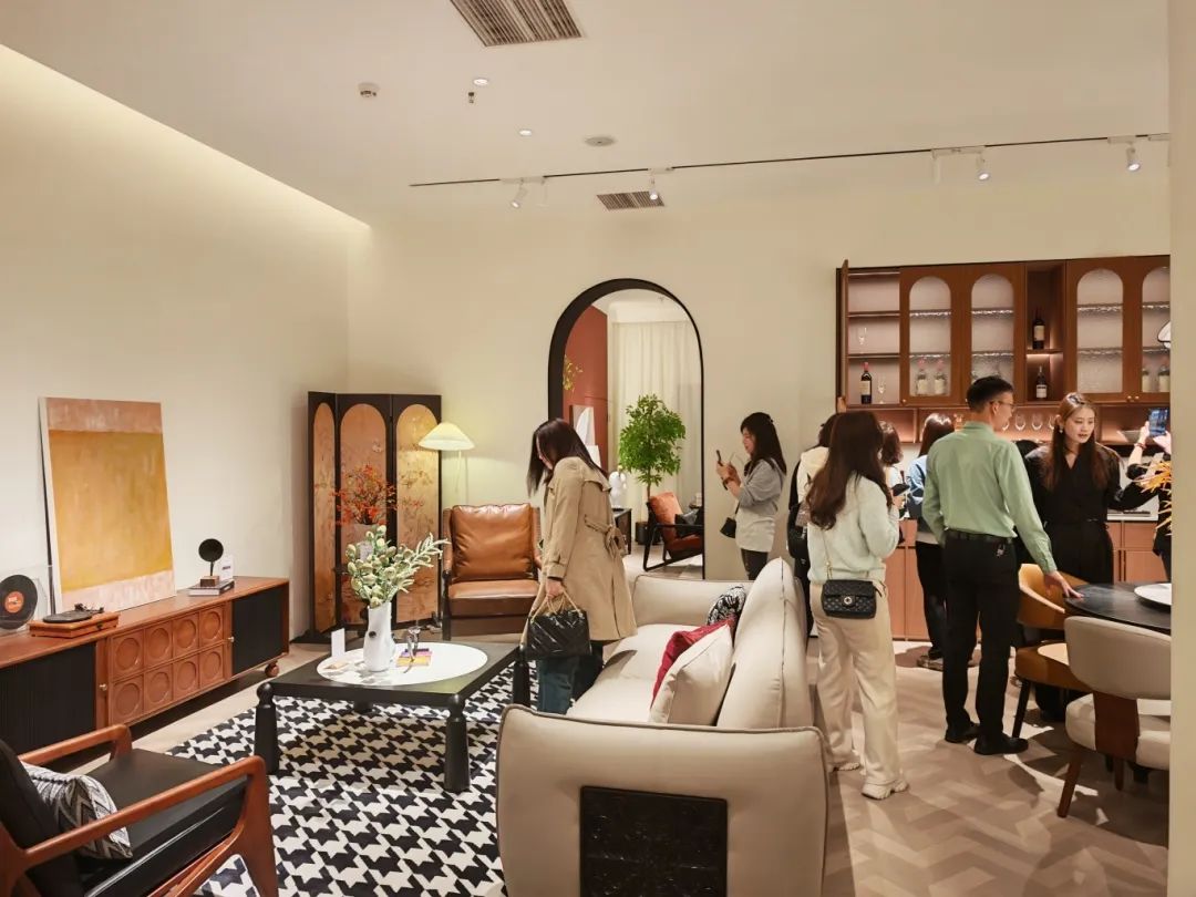 新品發(fā)布品鑒會(huì)現(xiàn)場(chǎng),我們中古全案憑借獨(dú)特的空間布局,創(chuàng)新的時(shí)尚設(shè)計(jì),優(yōu)質(zhì)的材料細(xì)節(jié)以及精心的場(chǎng)景營(yíng)造,吸引了全國(guó)優(yōu)秀經(jīng)銷(xiāo)商及業(yè)界嘉賓們的目光,他們沉浸在高級(jí)的美學(xué)世界里,感受創(chuàng)新與品質(zhì)交織的魅力。我們中古展廳里人潮涌動(dòng),眾多經(jīng)銷(xiāo)商都對(duì)中古全案新品的創(chuàng)新設(shè)計(jì)稱(chēng)贊有加,現(xiàn)場(chǎng)簽約不斷,氣氛熱烈。