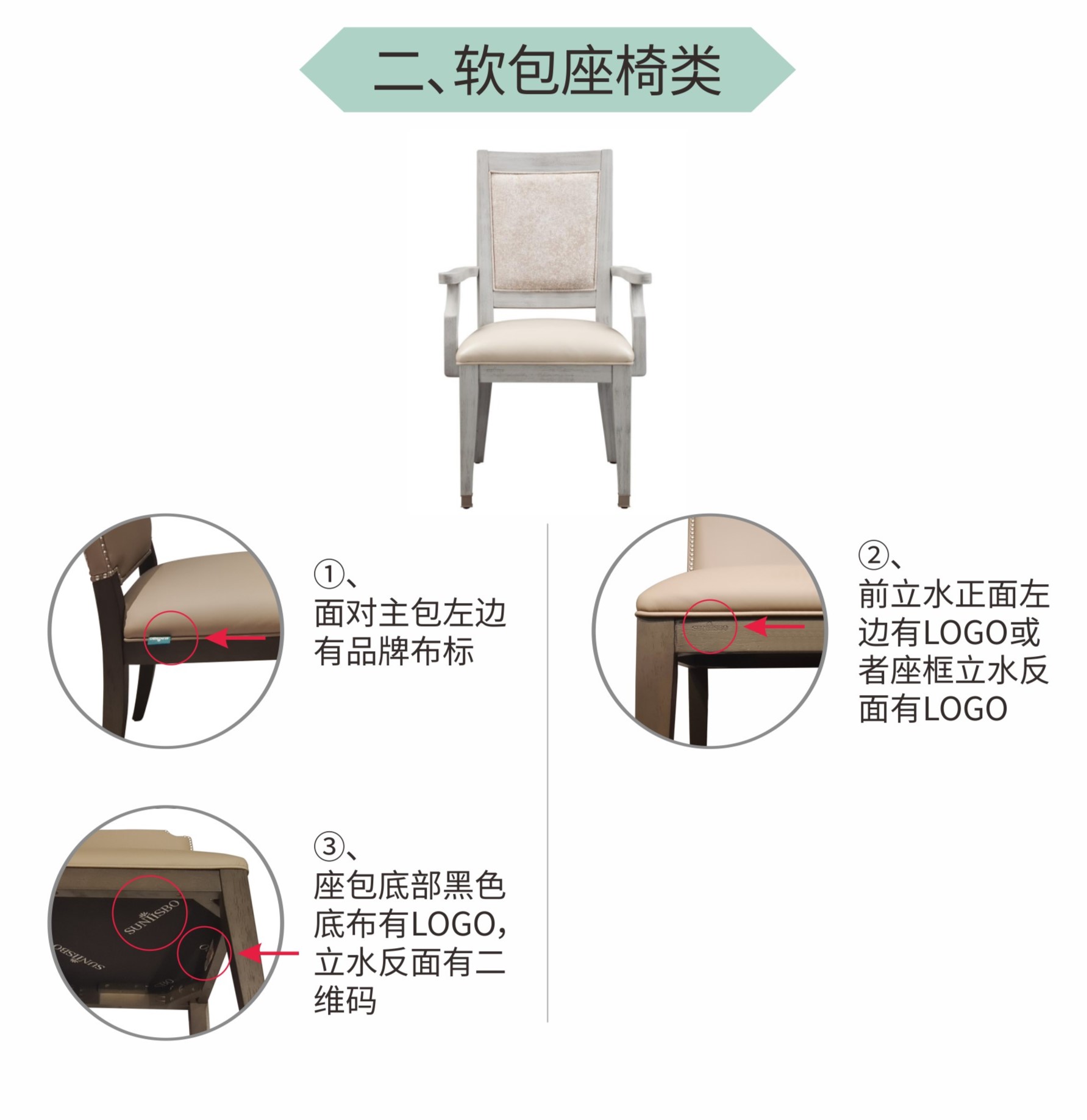 (1)產(chǎn)品扶手處有品牌布標;