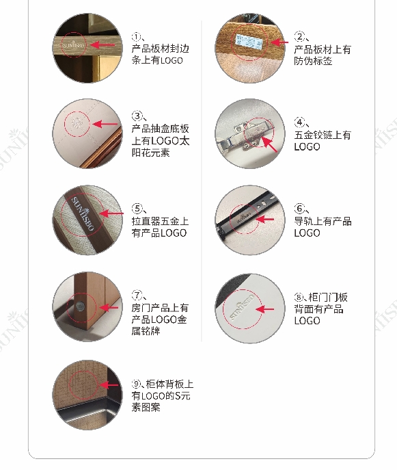 ①、產(chǎn)品板材封邊條上有LOGO